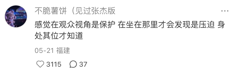 還有人抽離成第三人稱視角後發現,似乎外人看起來的保護,在當事人的感受下很可能會變成壓迫。