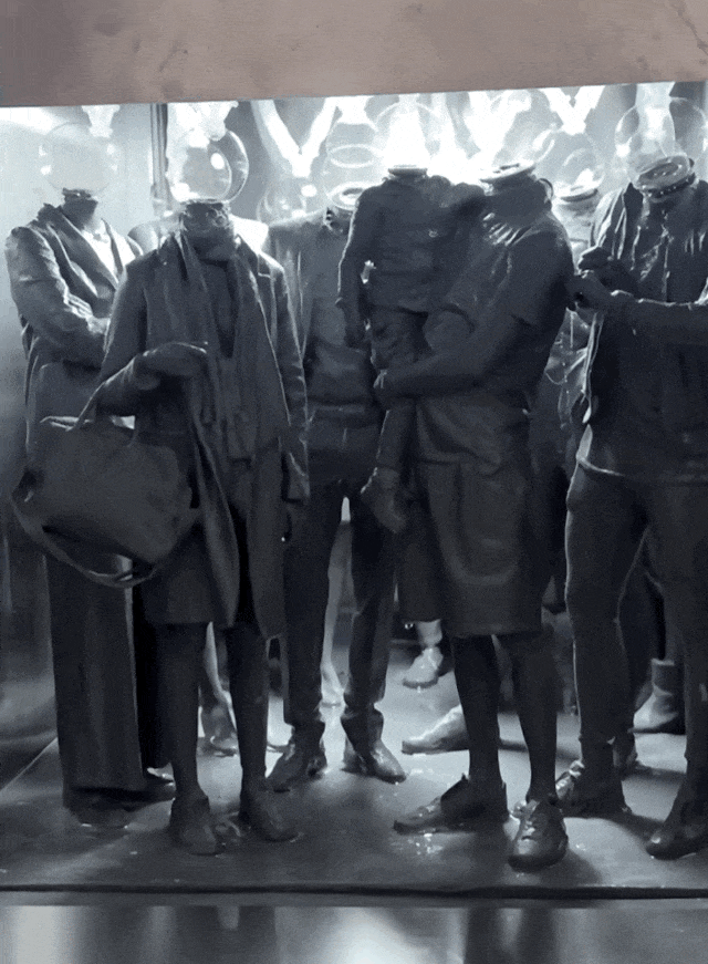 當電梯的門打開,裏面的人們彷彿就是整日在城市裏奔襲的你我他。而這些人身都沒有頭顱,只有一個個暫時出現又很快消失的泡沫。