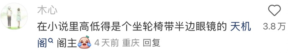 由於要素過多,以至於觀眾們想到作者本人,腦海中浮現出一個**“坐着輪椅戴半邊眼睛的天機閣閣主”**形象。