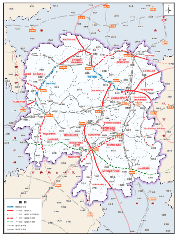 這些項目一旦建成,湖南將從單一依賴京廣、滬昆“十字形”高鐵架構轉變為多通道的新格局。