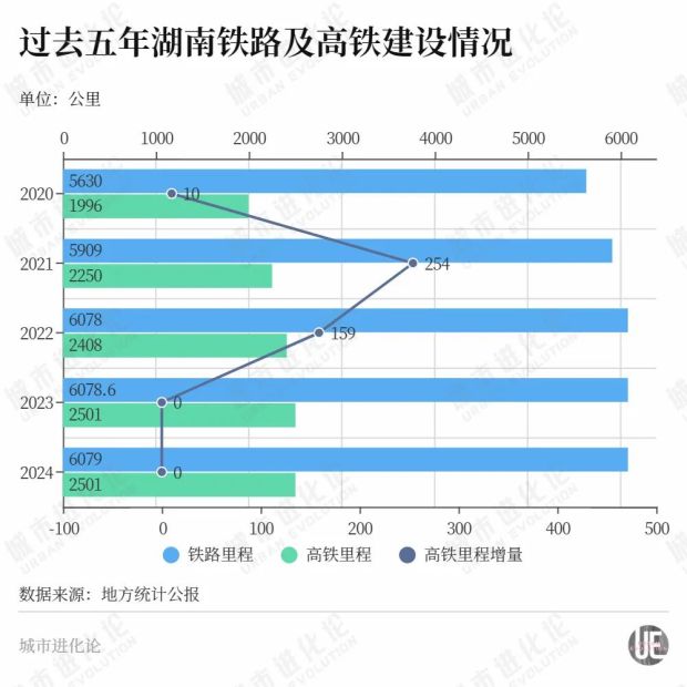 近年,湖南高鐵建設整體放緩。根據國家鐵路局最新發布《2024年鐵道統計公報》,去年全國鐵路固定資產投資完成8506億元,投產新線3113公里,其中高速鐵路2457公里。這當中,湖南的新建高鐵里程數為零,這已經是湖南連續兩年沒有新建線路“入賬”。