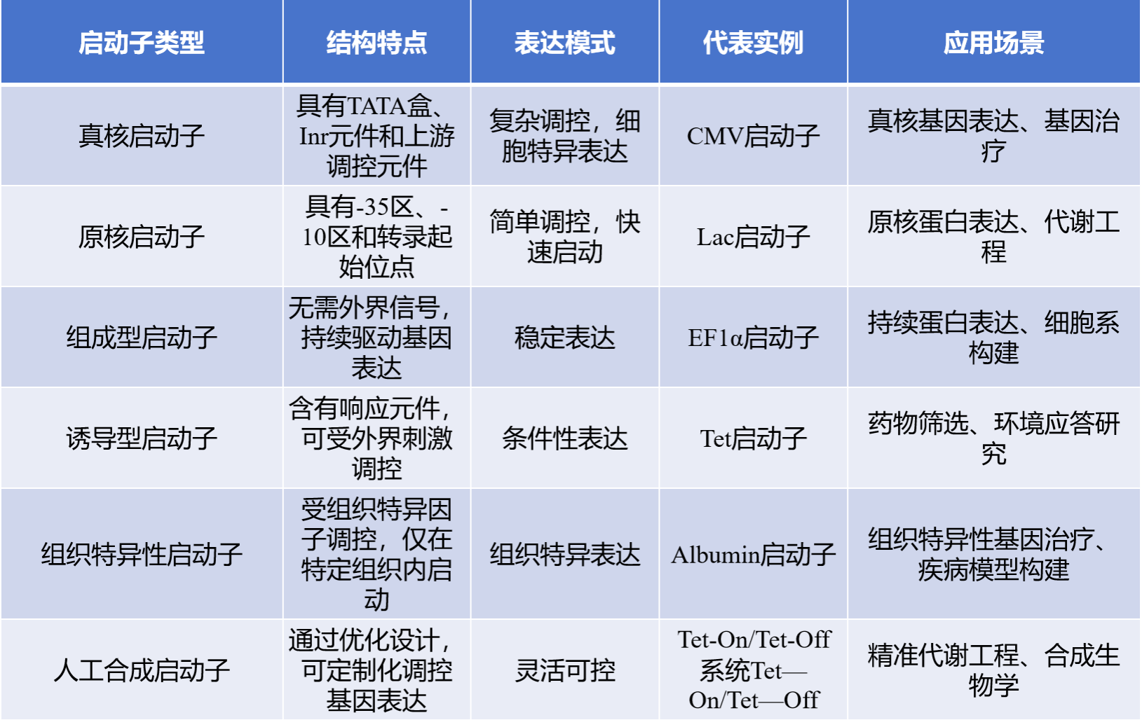根據調控機制和表達模式,啓動子主要分為三種類型:組成型啓動子、組織特異性啓動子和誘導型啓動子。