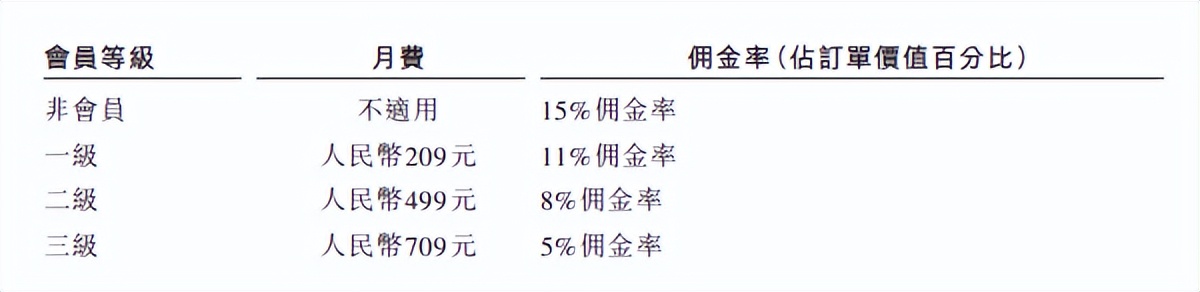 貨拉拉同城貨運會員等級及佣金率 | 圖片來源於招股書