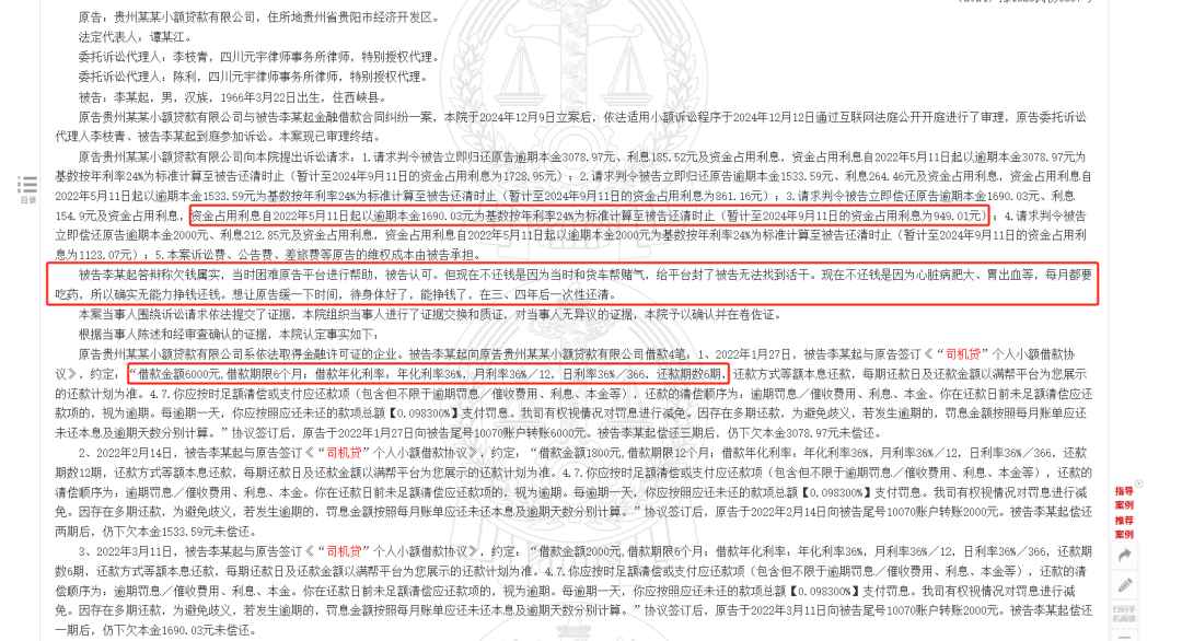 比如,中國裁判文書網的一份判決書中提及,李某因資金困難與貨車幫小貸多次簽署借款協議,年化利率均為36%。後因李某生病無法正常工作,致使貸款逾期,並遭到貨車幫封號,進一步陷入困境。