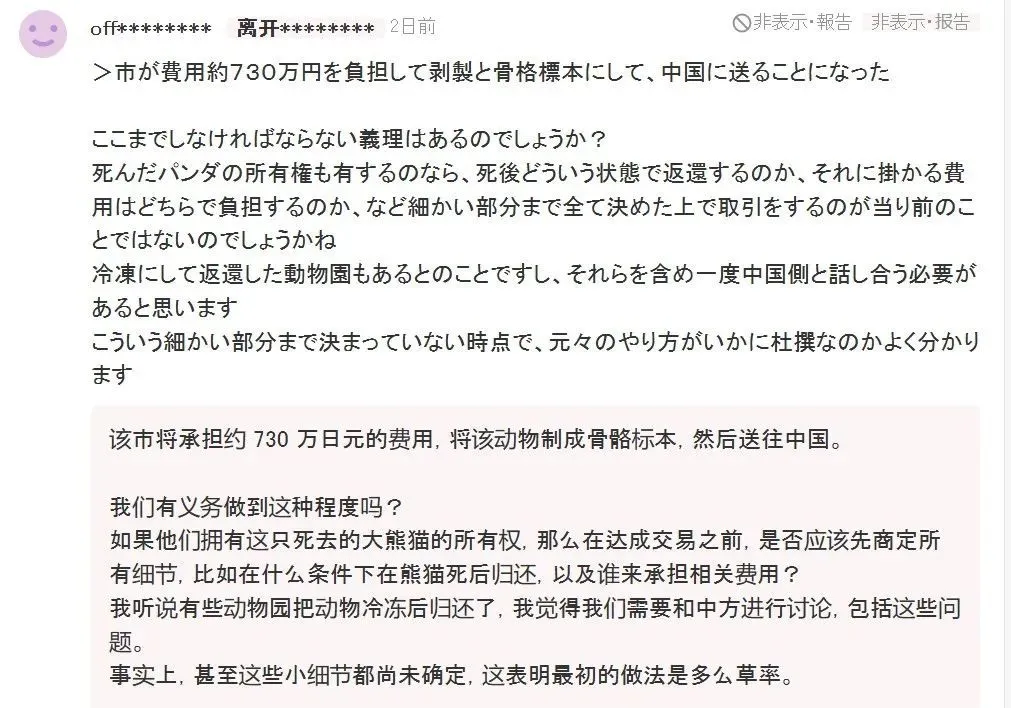日本網友炸鍋:熊貓遺體也必須製成標本歸還中國?是不是管得太寬?_風聞