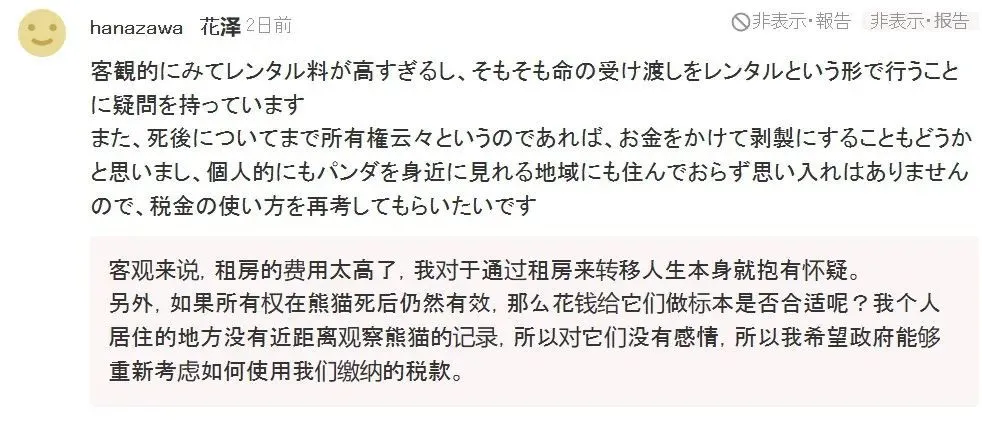 在X平台,網友 @PandaLoverJP 寫道:“死後も所有権は向こうにあって返さないといけないっていうのが驚き”(“連死後所有權都屬於中國,必須歸還,實在是令人震驚”)。