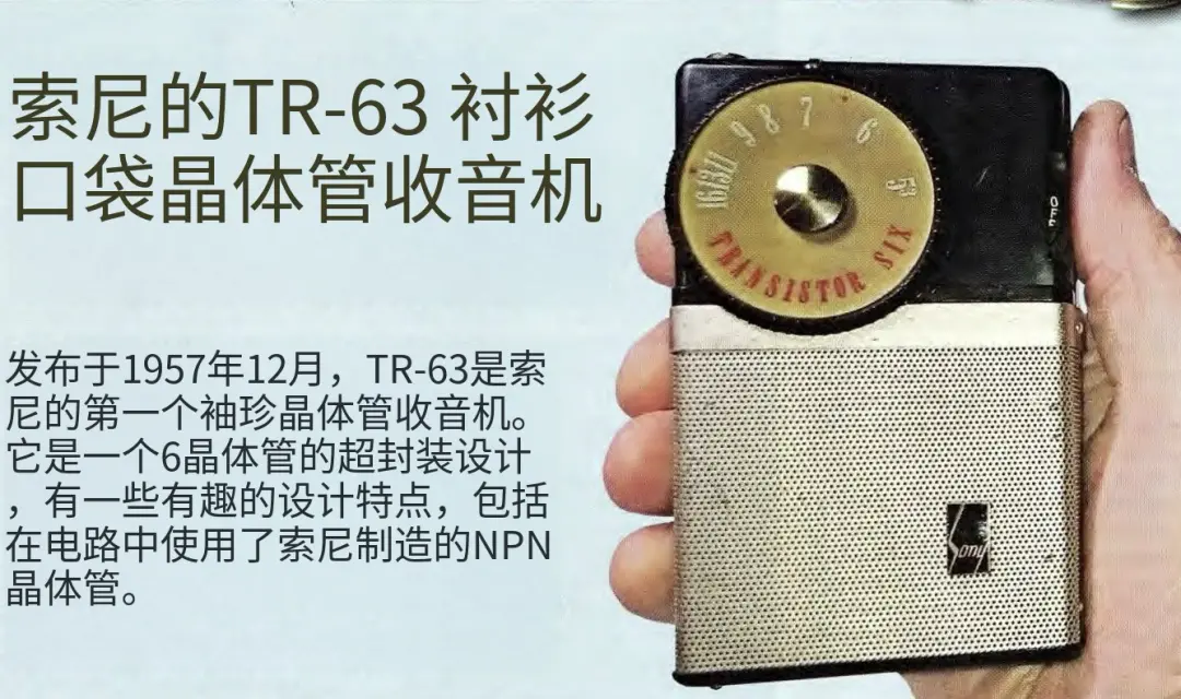 經過一番拆解和研究後,索尼在1957年拿出了自家的袖珍收音機TR-63。