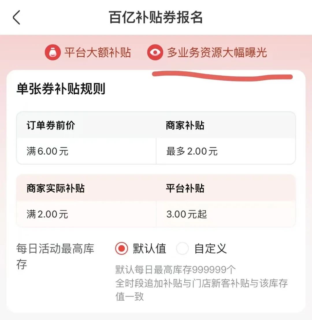 大概的意思是,如果商家自己做小於 2 元的優惠,競爭力會很小,相當於沒做,如果想做大於 2 元的優惠,那還不如干脆報平台活動了,因為平台也會適當出一些補貼,讓活動更有競爭力。