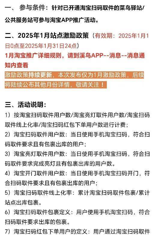 《號外工作室》近日調查發現,《淘寶APP推廣活動規則(2025)》顯示,淘寶APP針對菜鳥驛站的掃碼取貨,進行推廣活動獎勵。