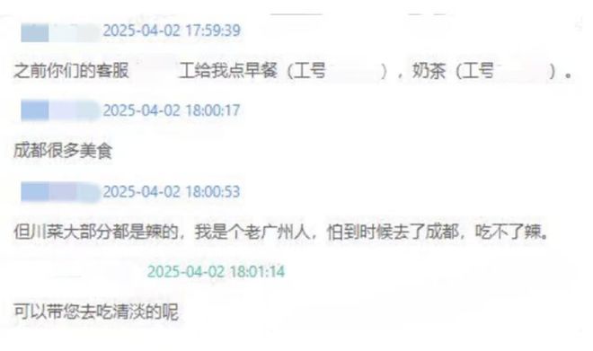 “你認識工號625866嗎,請幫我給他帶個好。”“昨天的工號630702客服,給我送了早餐,想給他個表揚。”“工號330980,給我點過奶茶,想再和他説句謝謝。”