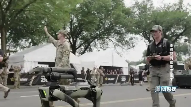 與其他國家無人機方陣規模動輒使用車載相比,幾人走在人羣中,周圍還盤旋着幾架遙控飛行的無人機,讓人感覺實屬有些草率。之後登場的是機器狗方陣,現場可以看到每隻機器狗後面,都有人拿着遙控器緊跟。跟在機械狗方隊後面的是各類軍校生方陣,當軍校生聚集在特朗普面前後,特朗普帶着他們一起念“效忠美軍誓詞”。