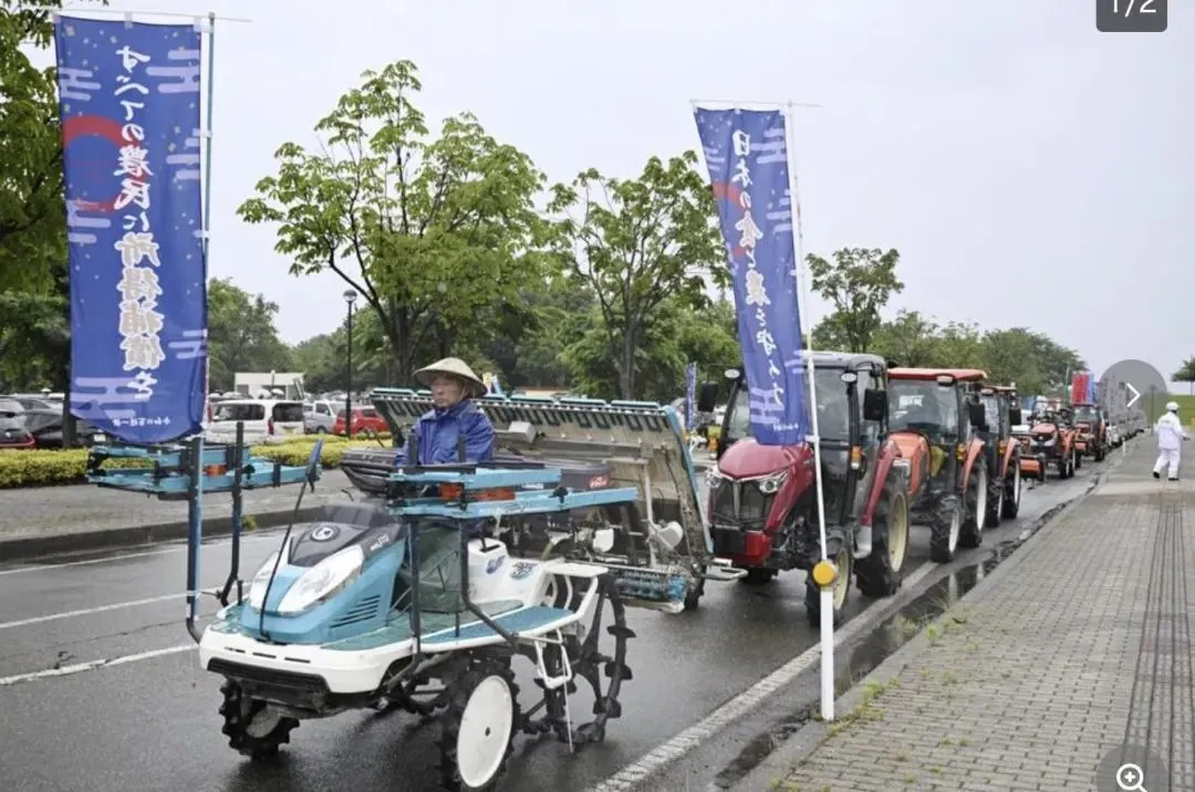 不過,僅最後一項已經刺痛日本農民。6月14日,新瀉縣長岡市的農民們開着10輛拖拉機和插秧機,冒雨舉行遊行示威,抗議“大米價格上漲而農户收入不漲”的現狀。約200人在現場高呼,“大家一起保護日本大米”。