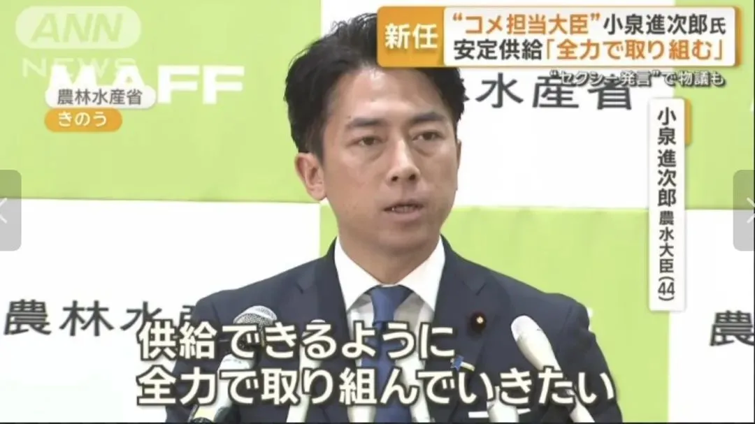作為未來首相熱門人選、前首相小泉純一郎的次子,現年44歲的小泉進次郎幹勁十足,表現出應對“米荒”危機的強烈意願,稱他“將以‘大米擔當大臣’的使命感全力以赴”。