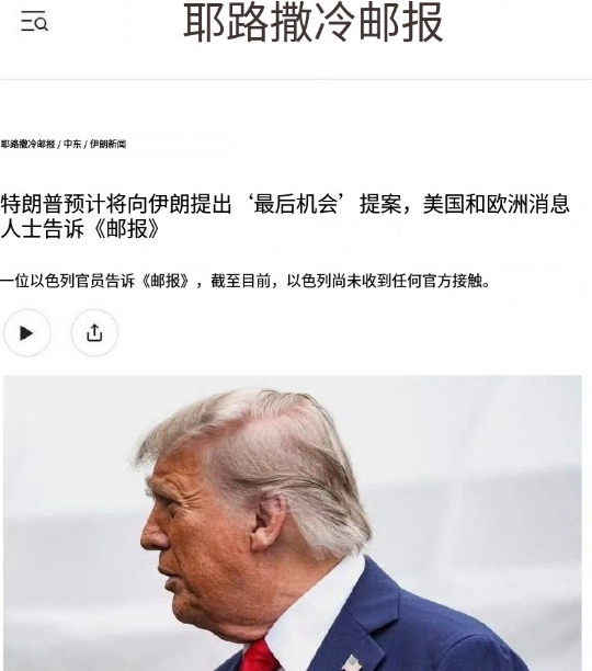 美國媒體稱特朗普提議本週與伊朗就核協議會談,巨型鑽地彈成美方’殺招”。CNN報道特朗普已經命令助手儘快安排與伊朗官員的會面,想通過外交手段解決伊朗與以色列的衝突。