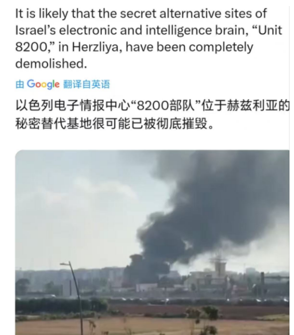伊朗這邊稱襲擊了以色列摩薩德總部和電子情報中心。這裏被吹噓成地球上戒備最森嚴的基地之一,但目前以色列的防空系統面對伊朗的高超音速導彈形同虛設。