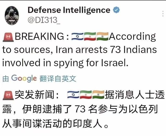 與此同時據消息人士透露伊朗逮捕了 73 名參與為以色列從事間諜活動的印度人,不知道視頻裏的是不是伊朗所謂的印度人。