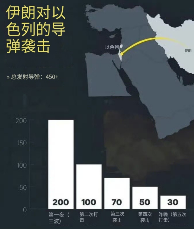 伊朗在一夜之間發射了兩波導彈,估計總數在20-30枚。伊朗今天(6月17日)的“導彈齊射”,據稱是伊朗彈道導彈攻擊了以色列摩薩德總部的視頻,連續三發突破“鐵穹”反導系統的攔截,兩枚高爆彈頭在建築羣中爆炸。據稱有一發打在格利洛特基地,那裏是摩薩德和8200情報部隊。多方對比之後確認以色列軍事情報中心大樓也伊朗被炸了。