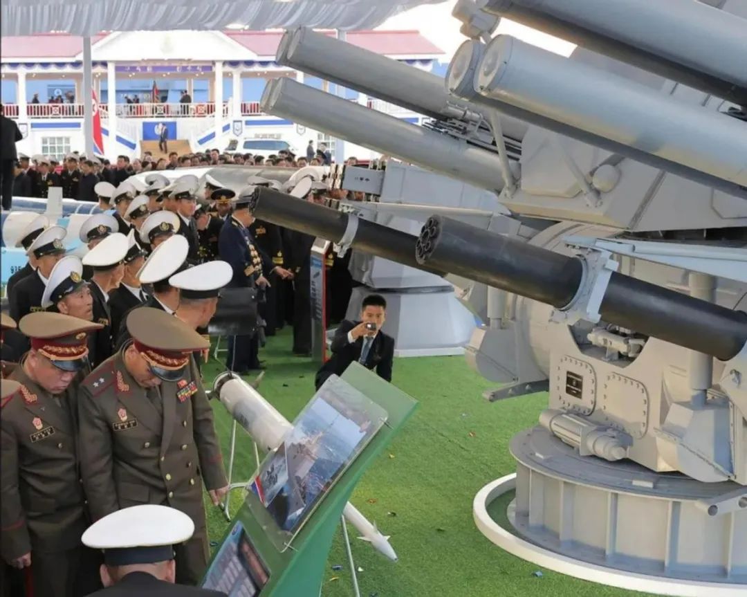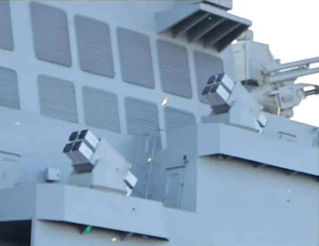 6管30毫米近防炮。“崔賢”號在艦體中部兩舷各佈置新型6管30毫米近防炮,這門炮可能是朝鮮自行研製的,採用了老式的AK-230型雙管30毫米近防炮的炮塔部分,將雙管30炮和內部機構拆掉,換成了6管30毫米轉管炮和供彈機構。主要特徵是炮管採用風冷設計,而不是俄式630炮的水冷套。
