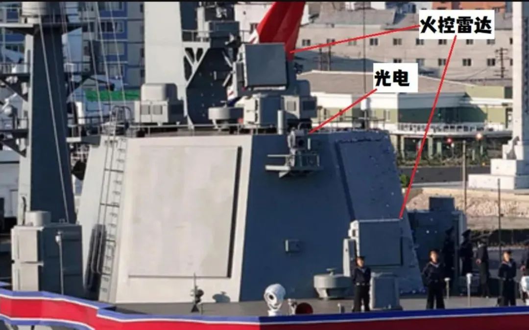在主雷達的頂部和前部,各有一部採用方型天線的火控雷達,用於引導主炮和近防炮作戰。看上去與俄羅斯22350型護衞艦使用的5P-10-02相控陣火控雷達很相似,只是尺寸不一致,且沒有側面的光電通道。