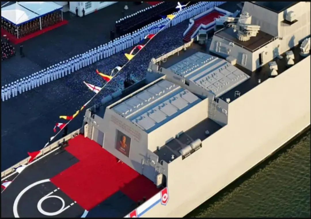 艦載戰術彈道導彈。“崔賢”號艦體後面那10個超大口徑垂髮系統,就是用來裝載“火星-11水”艦載戰術彈道導彈的,這是已經公開的火星炮-11潛射戰術彈道導彈的艦載版本,屬於射程500公里的近程戰術彈道導彈。火星-11水採用冷發射,底部有保護噴口和彈翼的底罩設計,改進後裝進艦尾的大尺寸冷發射垂髮裏的難度不大。