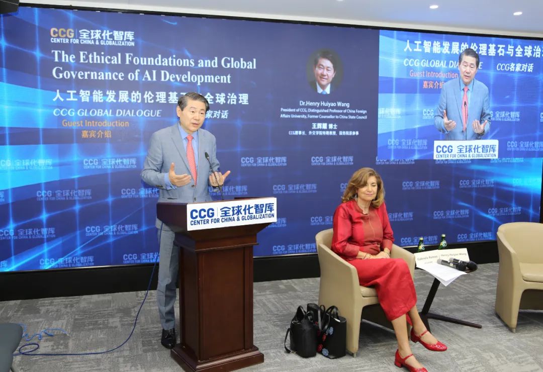 活動伊始,CCG理事長、國務院原參事王輝耀博士表示,很榮幸在CCG歡迎聯合國教科文組織助理總幹事拉莫斯女士。她具備豐富的國際組織經驗,長期致力於推動包容社會、科技倫理和性別平等,尤其在AI倫理治理方面成果卓著。王輝耀還指出,此次活動為“CCG全球名家對話系列”一部分,該系列已連續舉辦五年,匯聚世界政要、專家學者和智庫領袖,致力於推動全球思想交流與合作。