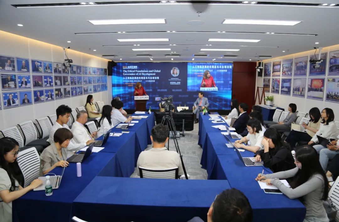 現場問答環節氣氛熱烈,中國政法大學數據法治研究院教授、CCG特邀高級研究員張凌寒,中國科學院研究員、人工智能安全與超級對齊北京市重點實驗室主任、聯合國人工智能高層顧問機構專家曾毅就人工智能倫理治理、全球科技合作以及聯合國教科文組織未來角色等議題,與拉莫斯女士展開深入交流,展現出中外專家間的高度共識與真誠互動。