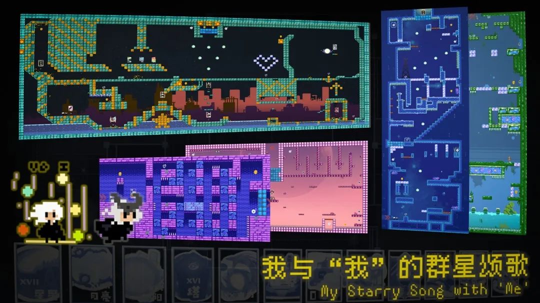 小王把自己學到的“強化學習”知識應用到了Mini Game中,他的畢業作品名為《我與“我”的羣星頌歌》,做了一年半的時間才最終完成。這是一款在2D平台跳躍玩法中融入了彈珠射擊元素的像素風橫板闖關遊戲,遊戲中加入了雙子角色,該角色會作為強化學習裏的智能體跟隨主角行動,並解鎖各種技能。除了“強化學習”的技術應用之外,小王也賦予了遊戲很強的精神內核和自我表達:在充滿未知的宇宙關卡中,主角與自己的雙子角色通過對話不斷探索自我、面對內心。