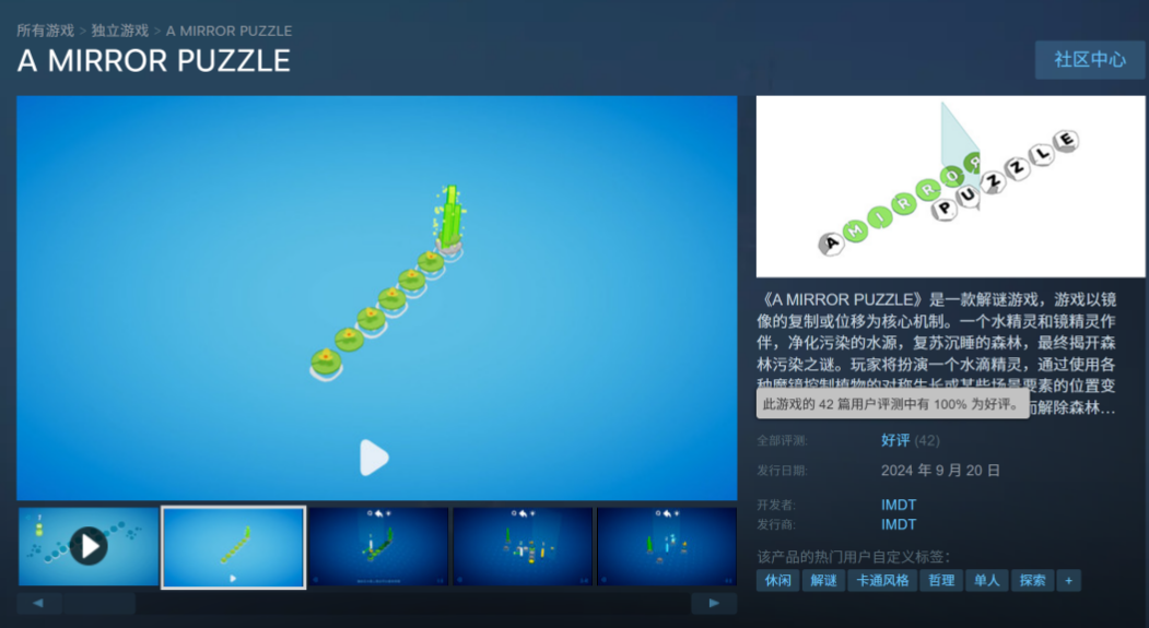 小白在遊戲製作工作坊參與開發的遊戲《魔鏡》(A Mirror Puzzle)是一款以鏡像為核心機制的解謎遊戲,團隊共有7人,小白是團隊中的關卡設計師,2024年9月由學校以IMDT的名義免費發佈在了Steam,目前好評率100%。