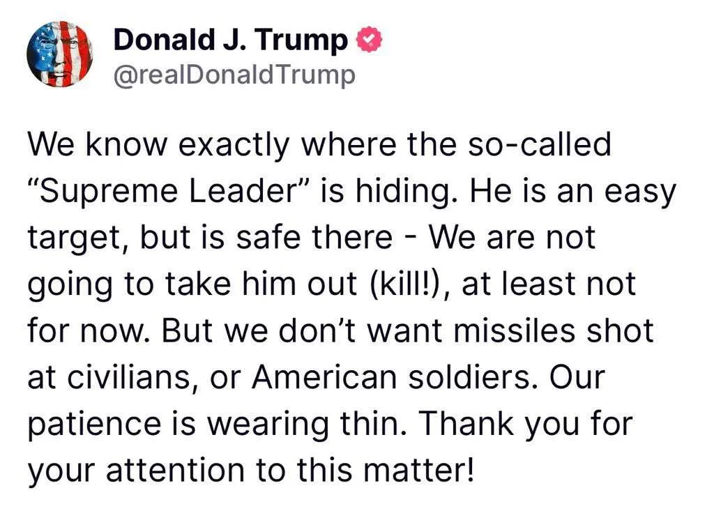**在筆者看來,以色列更可能發起針對伊朗核心人物的打擊行動,但目標未必是哈梅內伊。**從邏輯層面分析,以色列此次對伊朗發動軍事行動,直接目的是廢掉伊朗的核計劃,隨着行動推進,其目標可能演變為推動伊朗政權更迭。眼下哈梅內伊的處境極為危險:身邊人不可信,以色列又對他的行蹤瞭如指掌。據伊朗媒體報道,伊朗已經準備好在領導人遇刺的情況下管理敏感部門的計劃。但以色列若真的斬殺哈梅內伊,未必能撈到好處——如果能趁機扶植一個親西方的領導人,後果或許可控;可要是強硬派人物取而代之,對以色列而言將是災難。特朗普在其社交媒體上稱,他們知道哈梅內伊的藏身之處,但不會將他除掉,至少目前不會。