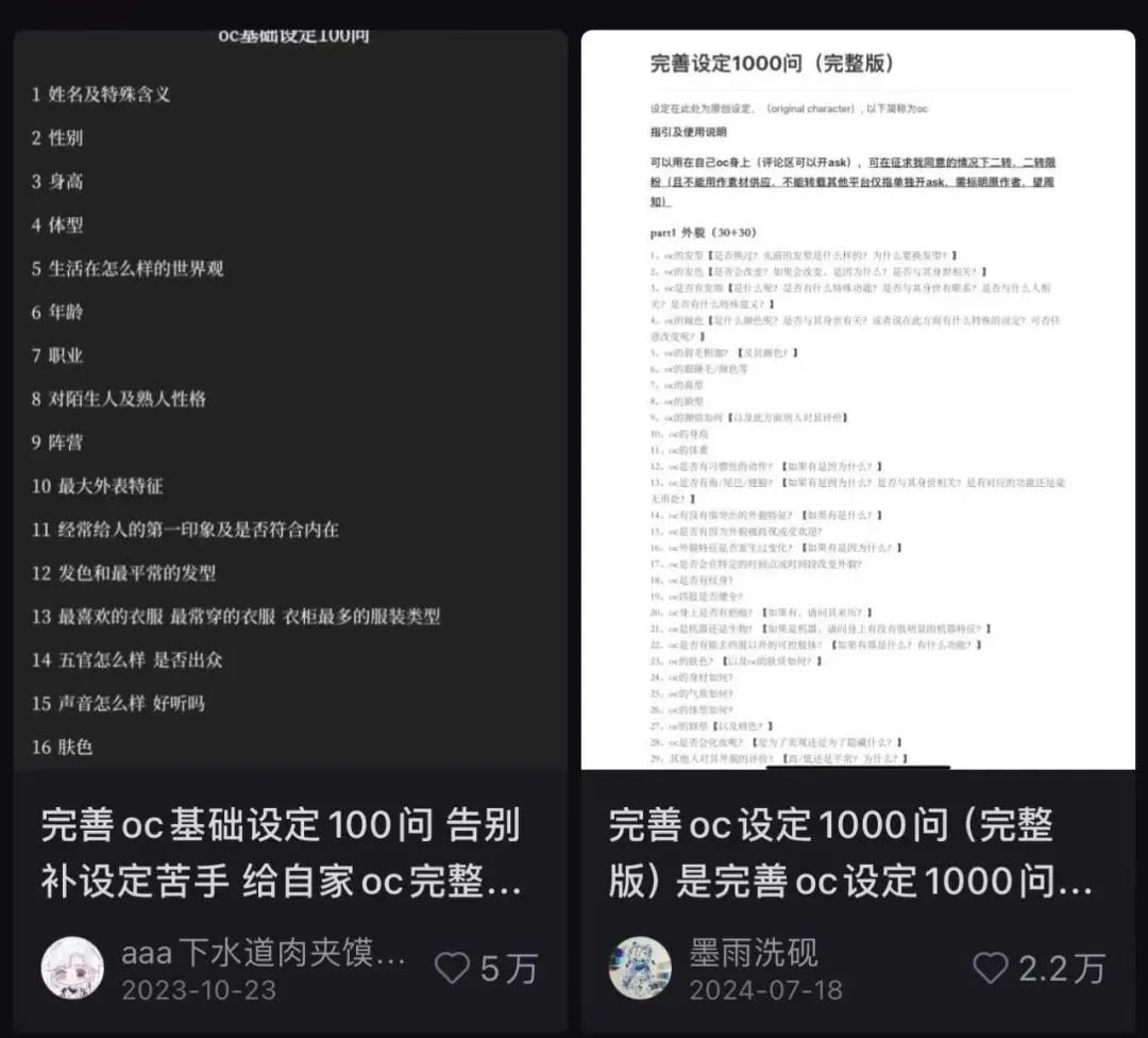 借用博主本人的話來説,這些問卷的適用場景並非是指導OC人如何寫作,而是將問題作為引線,挖掘出你在創作OC時,意識中存在得不夠清晰的問題。而OC人願意為之付費,説明這確實存在着某種創作上的需求。