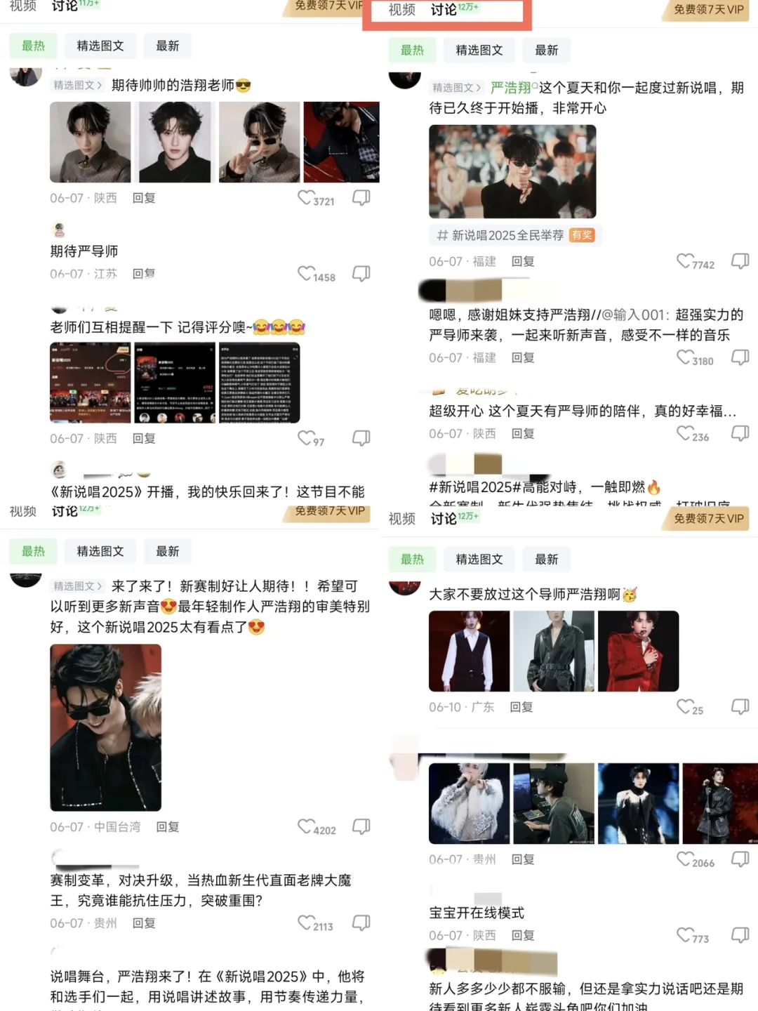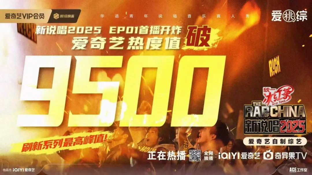 第二步策略則聚焦於藝人選擇,那就是押注能直接帶動會員增量的流量型、偶像型藝人。這一策略在《新説唱2025》上引發了不小的討論,當新生代偶像嚴浩翔被官宣為明星製作人時,輿論場瞬間沸騰。然而,爭議之下是實打實的數據飆升。在製作水準、選手實力與去年保持同一水平線的情況下,節目首播熱度破9500,比去年曆史最高熱度8951還要高500多。