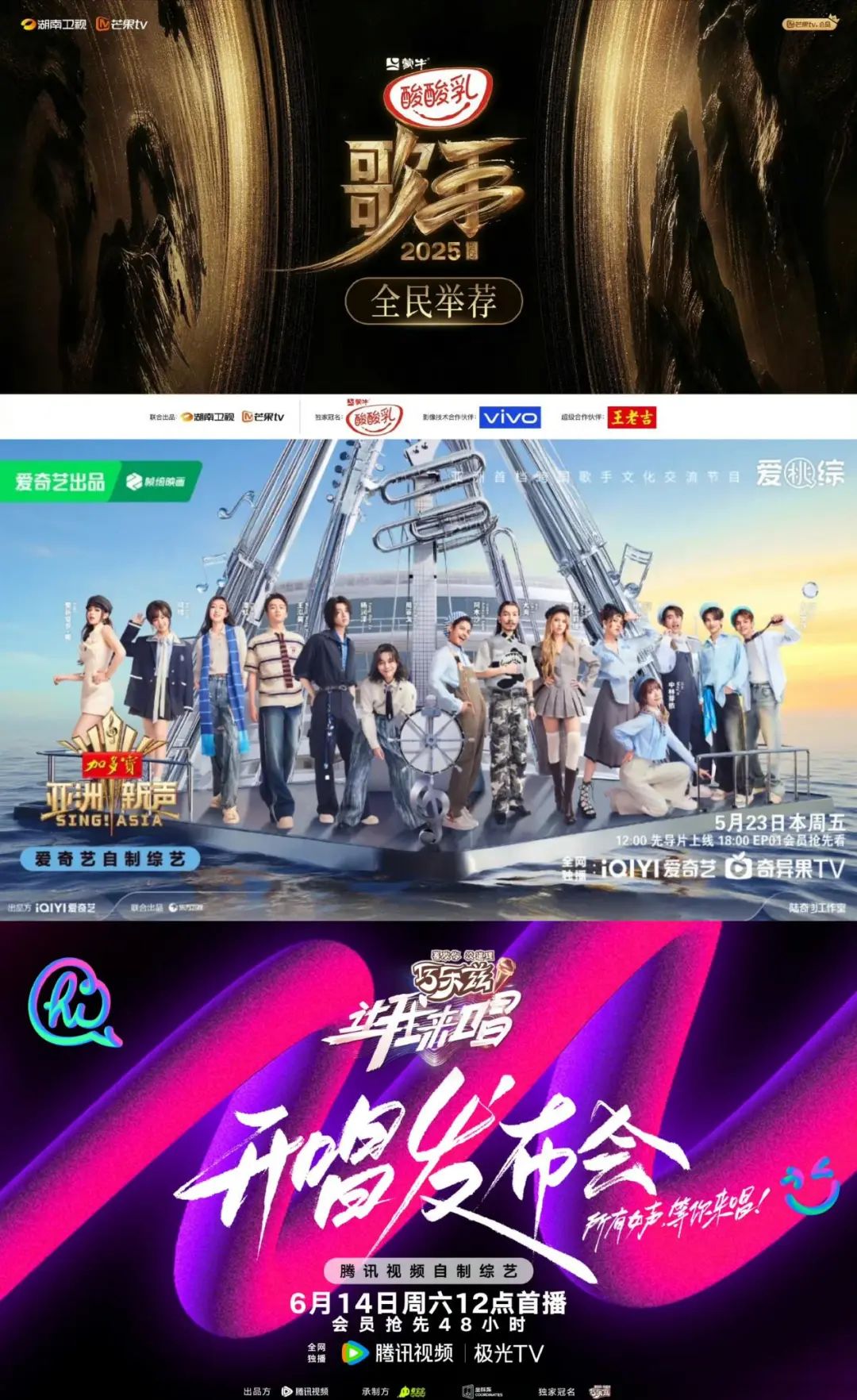 而作為客户投放關鍵期的Q2,情況同樣不容樂觀。頂着“爆款”光環迴歸的《歌手2025》,客户數較去年減少2個;《亞洲新聲》《讓我來唱》兩檔平台押寶的頭部音綜,都僅有3個客户,且其中還有指定產品這類小身份客户。