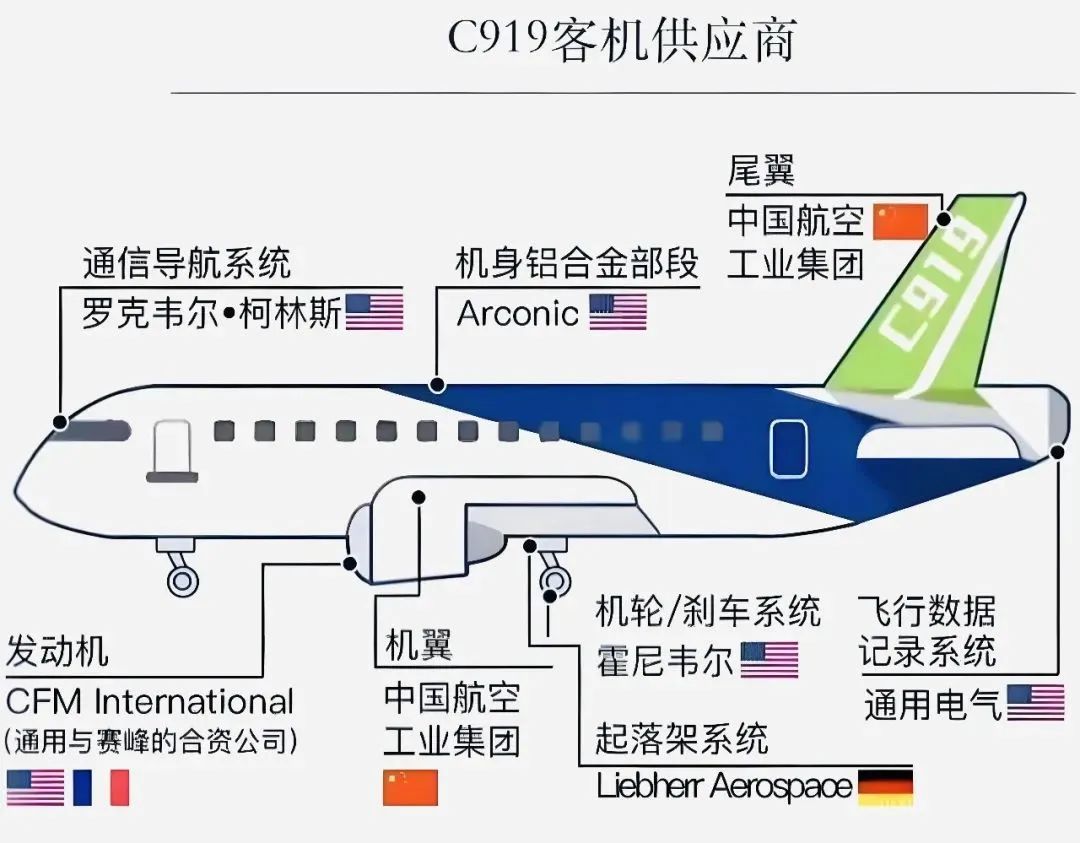 那麼C919作為中國首款按照國際適航標準研製的幹線客機,其零部件自誕生之日起同樣靠着諸多的產業鏈供給和全球化分工,這意味着在技術路線上,該款飛機一直採用的就是國際通行的 “主製造商-供應商”模式。