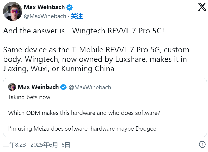 科技分析師 Max Weinbach 就在X上直言不諱:這款T1手機,不過是“國產翻新+金色濾鏡+川普背書”的三重buff。