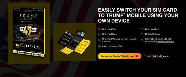 除了手機,Trump Mobile還搞了個手機配套套餐,叫“47計劃”。