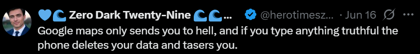 還有人補充道:“谷歌地圖只會讓你下地獄,如果你輸入任何真實信息,手機就會刪除你的數據,並用電擊槍電擊你。”