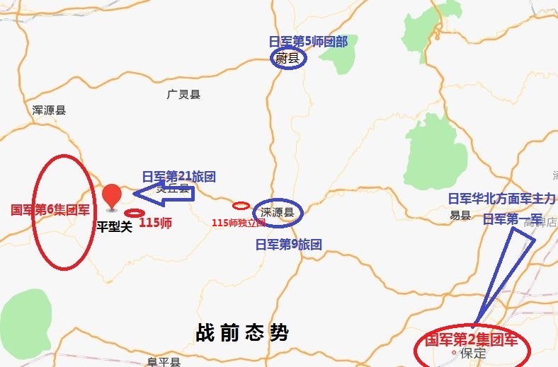 同時,101考慮到在平型關殲敵,為保障我軍後背的安全,必須阻止蔚縣和淶源的日軍前來增援。23日,101命令楊成武率115師獨立團出動,他給楊成武的任務是,切斷敵人從淶源至靈丘和從蔚縣至靈丘的公路運輸線,阻擊淶源、蔚縣兩個方向的日軍援兵。101和楊成武當時還不知道僅淶源方向之敵就是日軍整整1個旅團—第5師團的第9旅團!(見圖1)