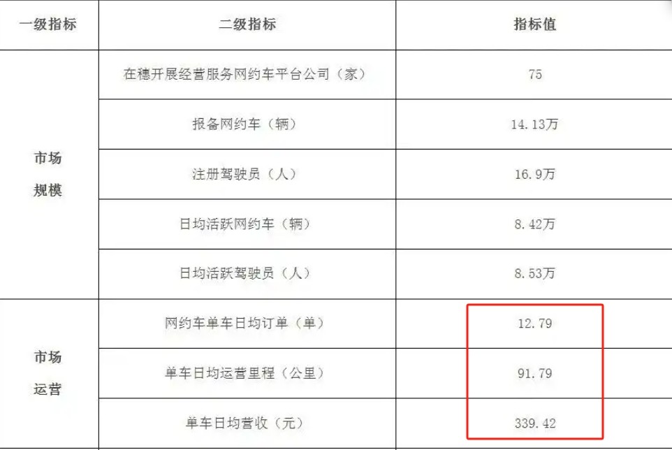 2024年11月,廣州全市的網約車日均訂單量約為12.79單,其中單車日均載客里程、營收,分別約為91.79公里、339.42元。而在2024年上半年,廣州市的網約車日均訂單量則約為13.09單,日均訂單≥10單的網約車日均營收約為386.18元。