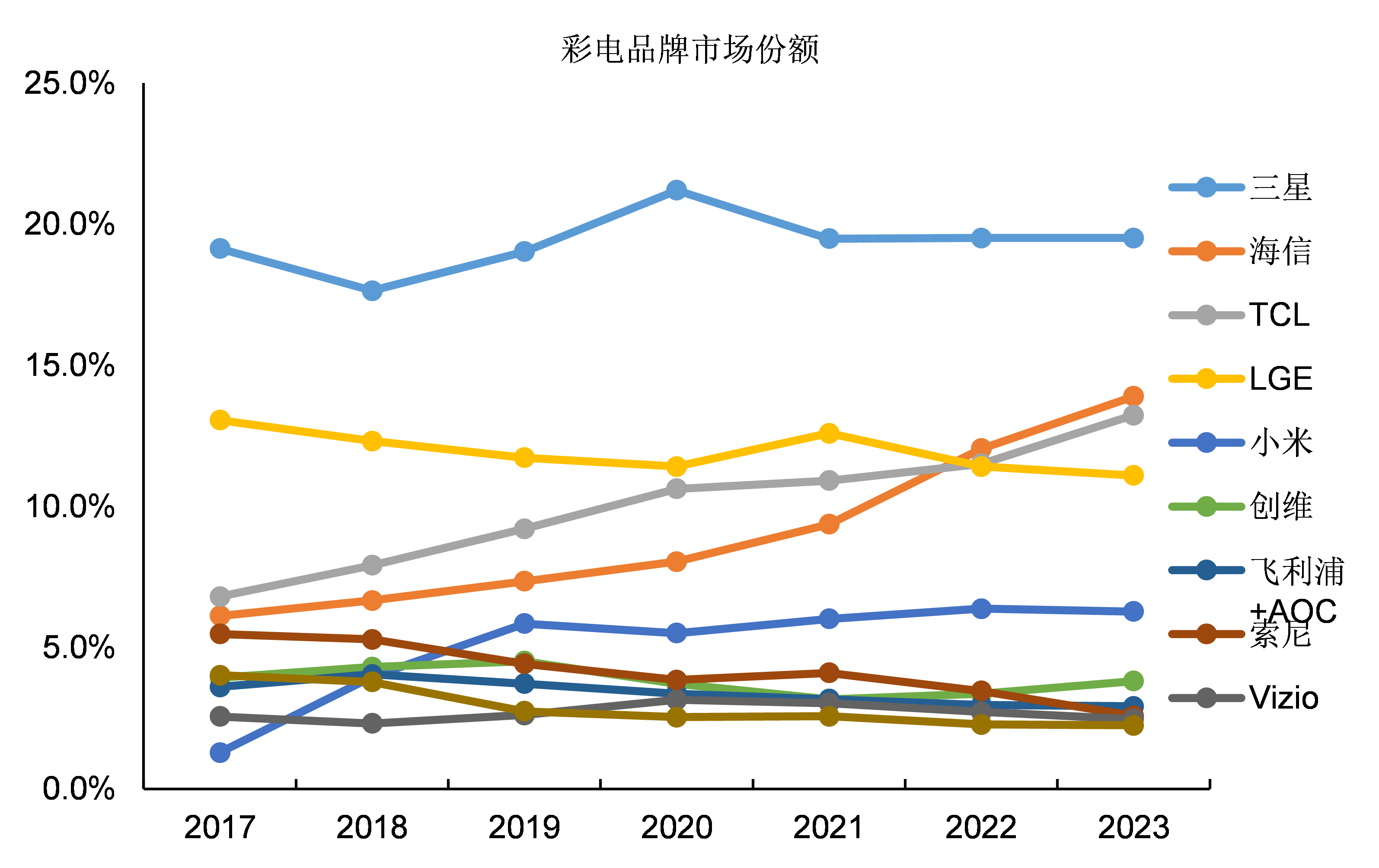 由於液晶面板產業的成功,中國彩電企業在全球市場同樣大獲成功,中國彩電品牌在日本市場的份額都超過50%。