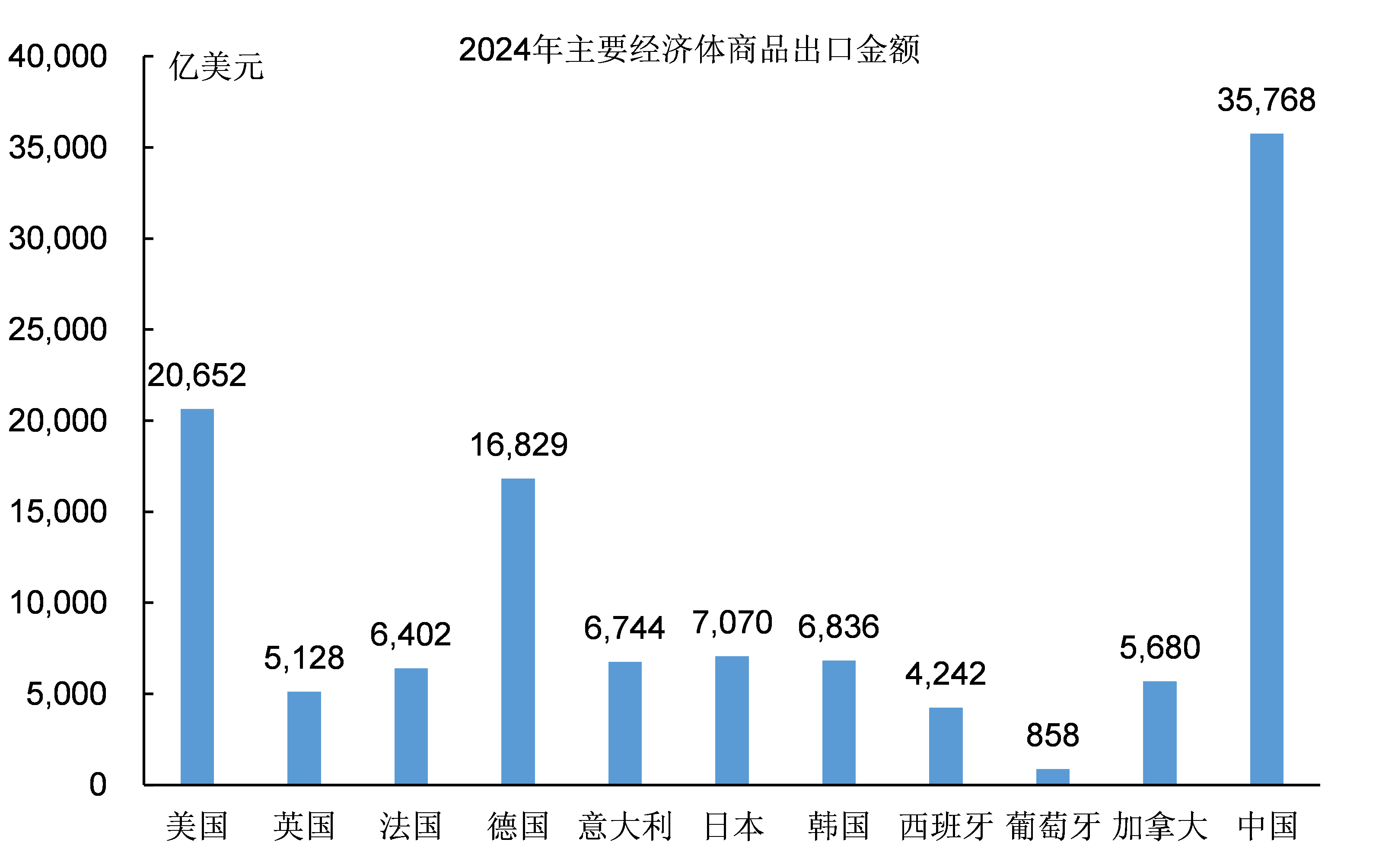 中國、美國和德國的商品出口金額都超過1萬億美元,中國的商品出口金額更是高達3.6萬億美元,美國的商品出口金額也高達2.1萬億美元。