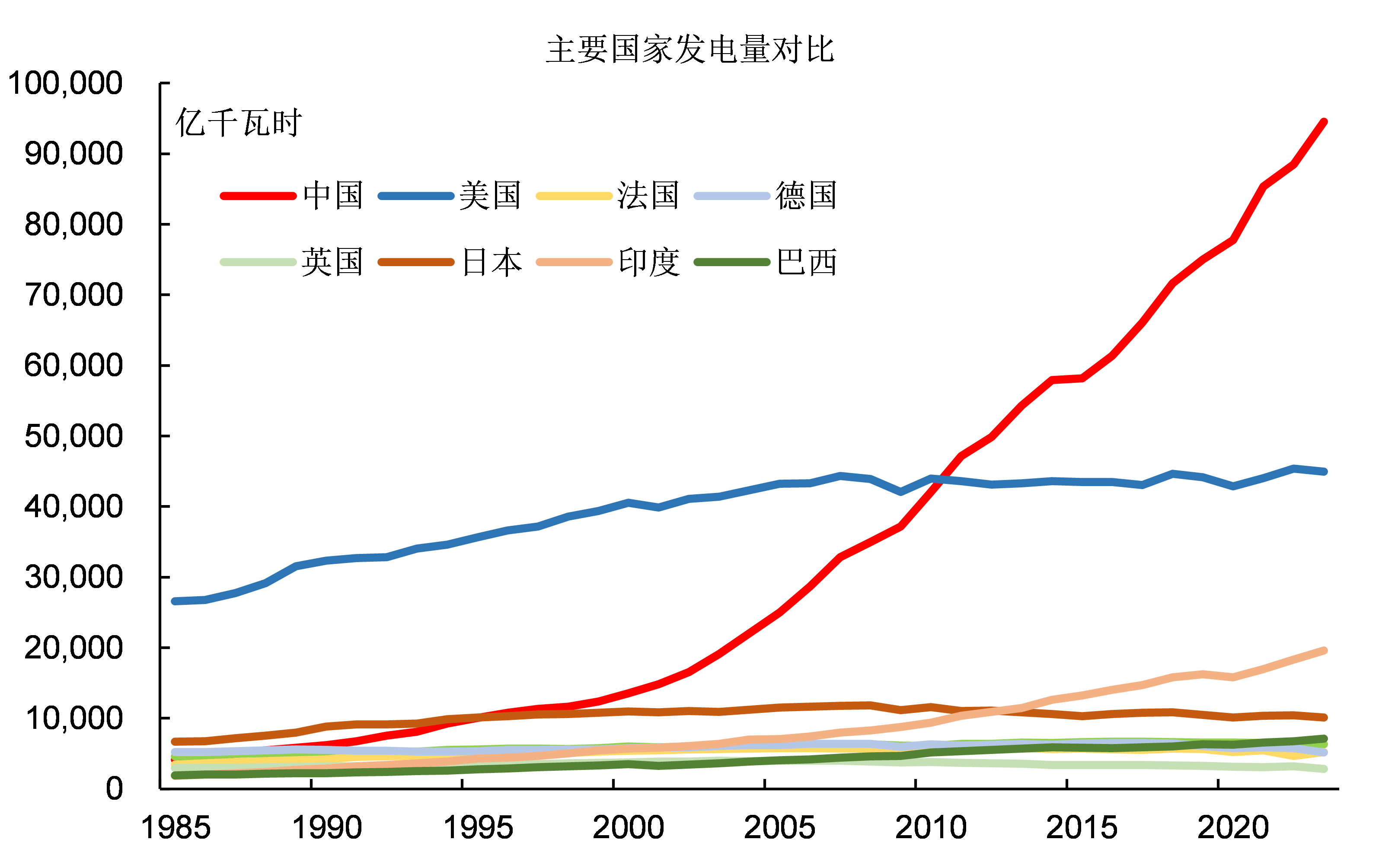 2023年日本發電量比最高峯(2008)減少了14.4%,德國發電量比最高峯(2017)減少了21.2%,法國發電量比最高峯(2005)少了9.8%,英國發電量比最高峯(2005)減少了28.3%。
