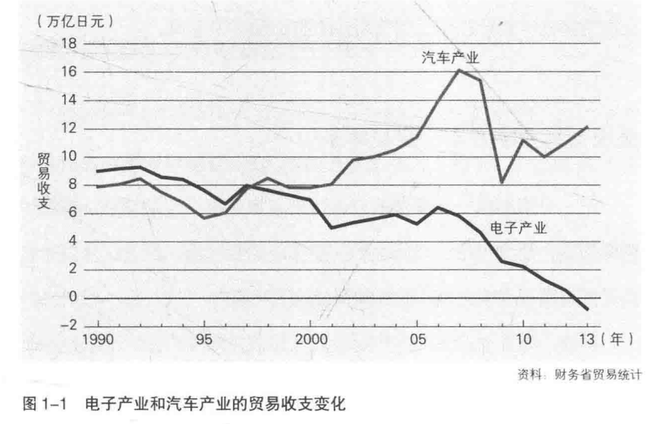 在中國和韓國的競爭下,日本原有的優勢產業無法保持競爭優勢。