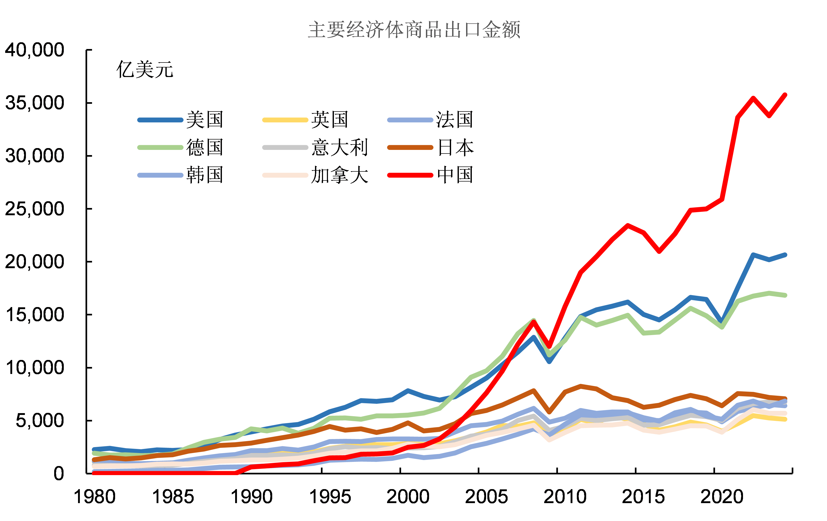 2024年日本商品出口金額已經徹底遠離了全球領先位置,淪為第二梯隊了