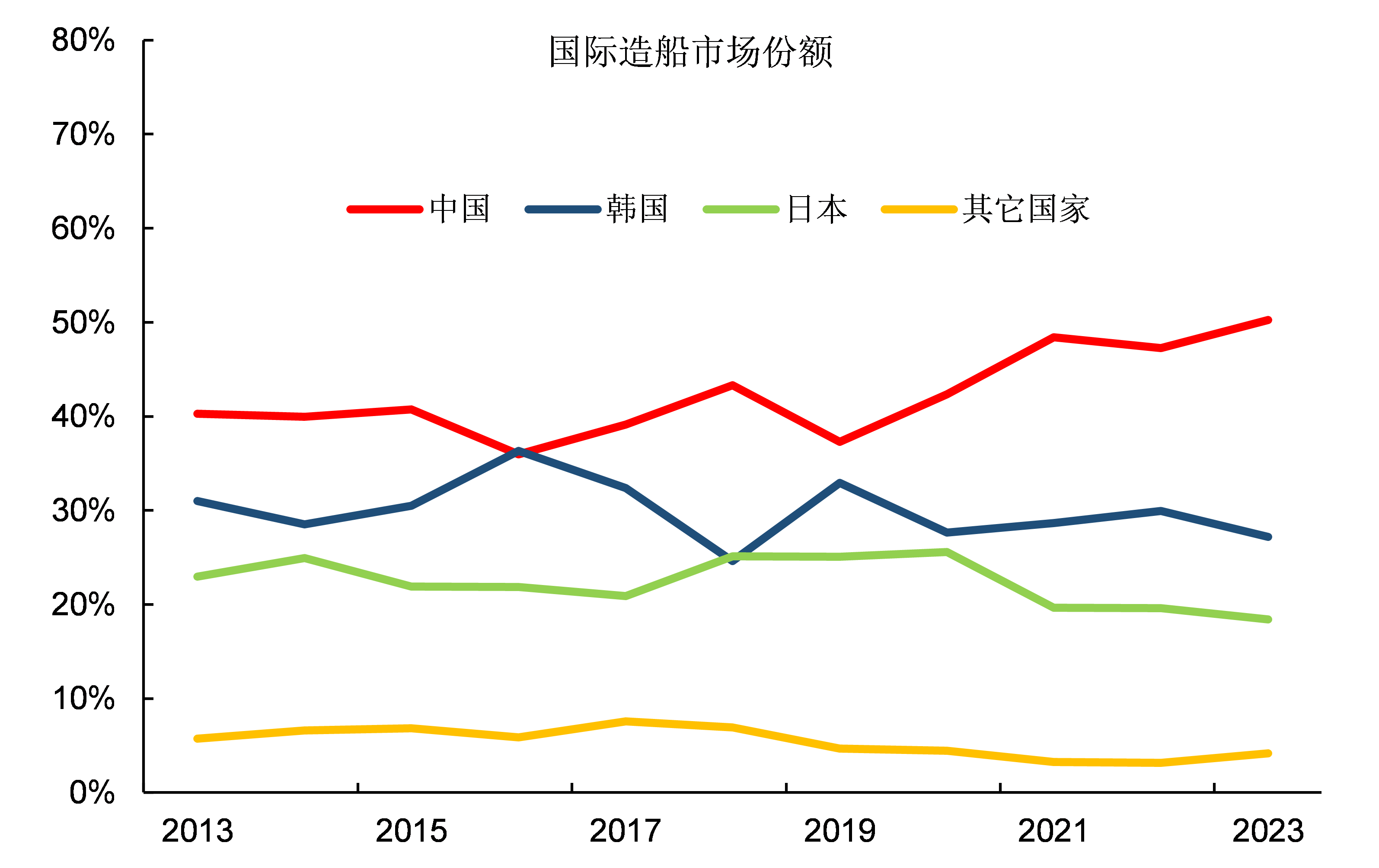日本在國際市場的造船份額一度超過50%,但是隨着韓國和中國造船業的崛起,日本造船業在國際市場的份額不斷下降。