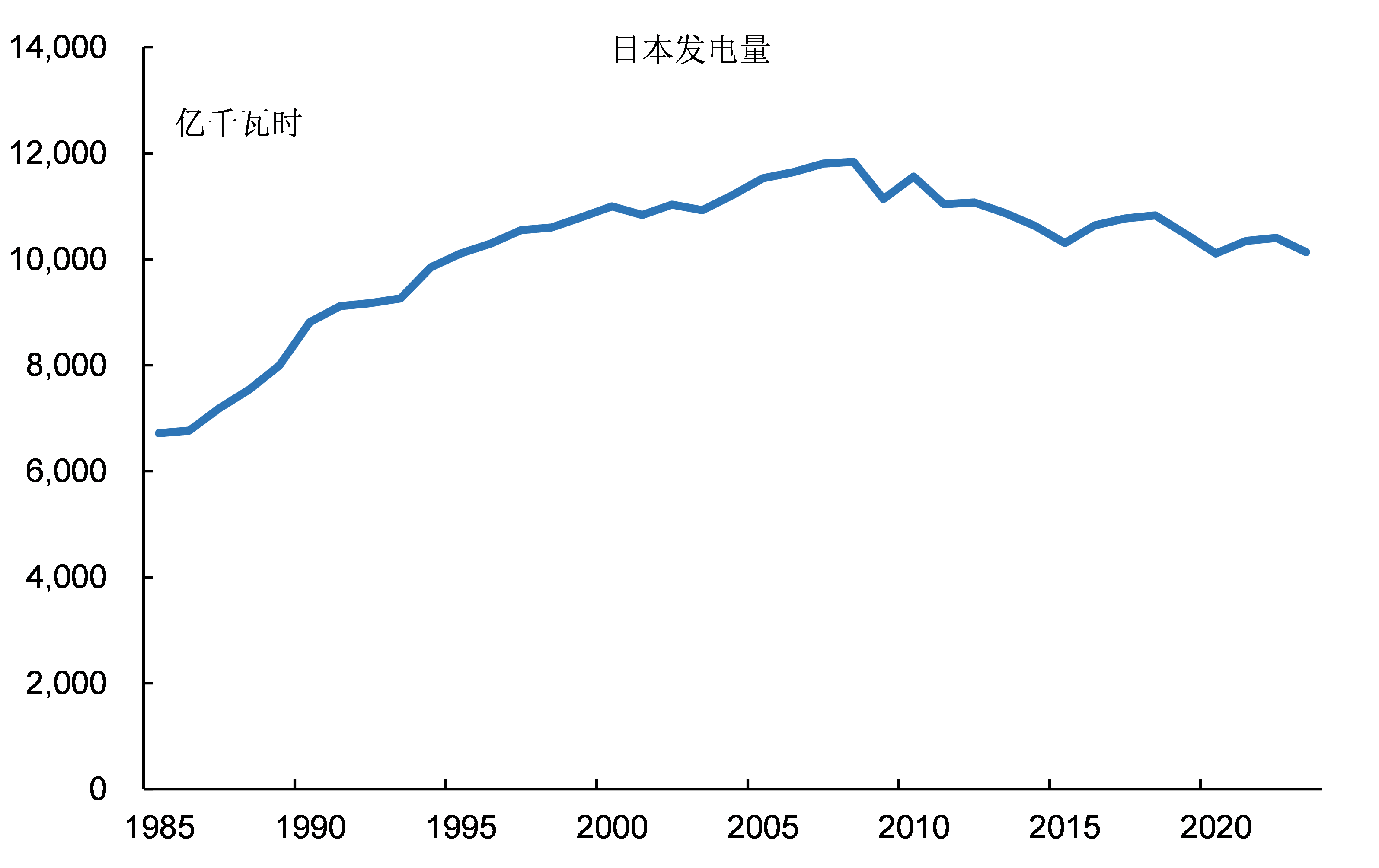 2023年日本的發電量是10133億千瓦時,相當於2008年最高峯的85.6%,少了1704億千瓦時。