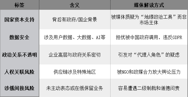 · 在歐洲市場,一些國家媒體借用“普世價值”“人權”“安全”等議題,對中國企業形成長期審視與質疑機制;