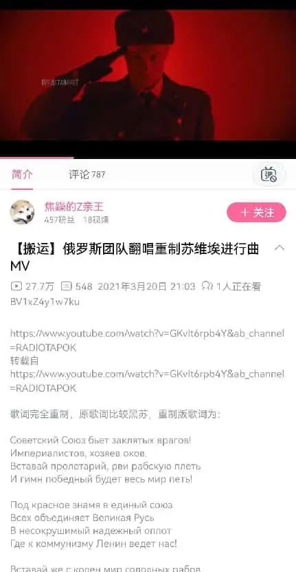 俄羅斯團隊演奏美國遊戲中的“黑蘇神曲”,這首進行曲實際上和悲壯為主流的蘇聯軍歌風格並不相通,但不妨礙俄羅斯人以此宣揚自己的強大