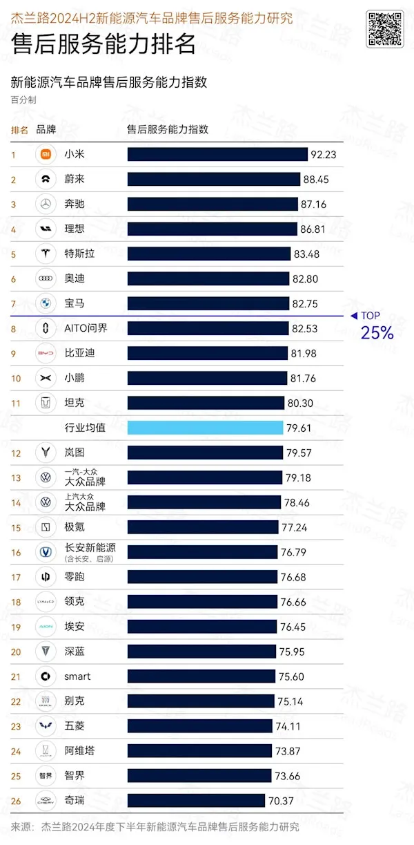 圖/2024年H2新能源汽車品牌售後服務能力排名