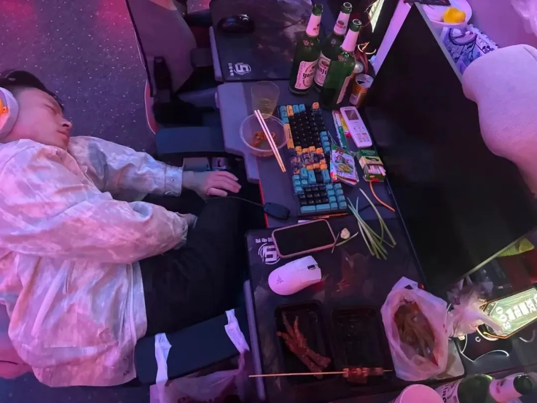 003號機的作息很固定。每天下午開始接單陪老闆打遊戲,打到晚上七八點喝酒,喝完酒有時睡到半夜12點有時睡到凌晨兩點,起來繼續打,打到早上七八點。酒是必需品,用來助眠,“你喝完酒別人在那嚷嚷你也能睡着”。