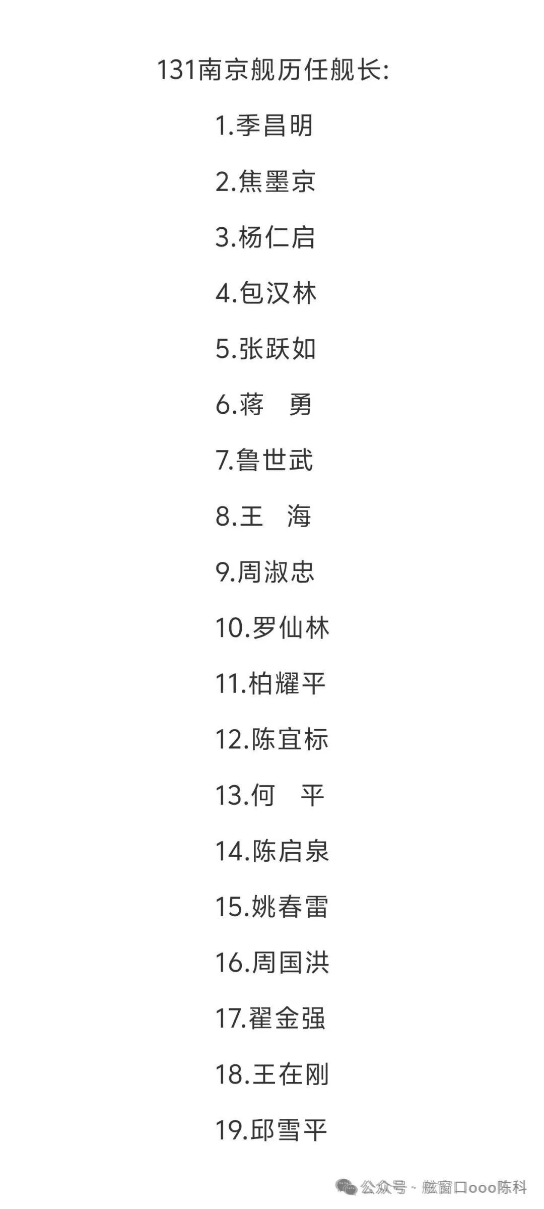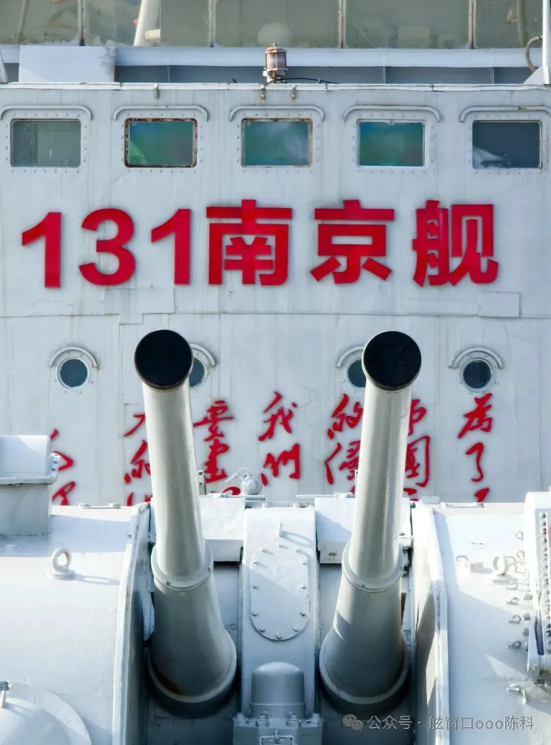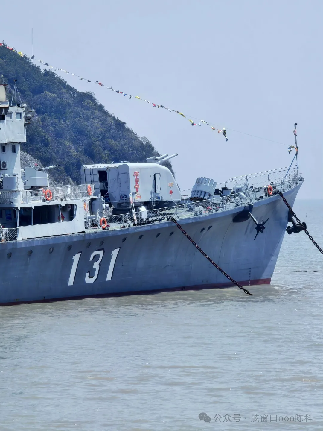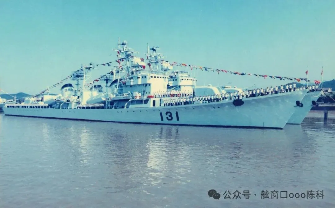 131南京艦:中國第一代國產驅逐艦,東海艦隊第一艘導彈驅逐艦,上海中華造船廠製造,長132米,寬12.8米,滿載排水量3670噸。1970年12月開始建造,1977年2月入列,2012年9月退役,服役35年多,航行45萬海里,先後接待過40多個國家首腦和政要,被譽為“外交明星艦”。出色完成赴南太平洋執行運載火箭發射試驗護衞等20多次重大戰備和軍事演習任務。湧現出了一大批優秀官兵,多次被艦隊表彰為軍事訓練先進單位、科技練兵先進單位、基層全面建設先進單位等。(此圖拍於30年前)